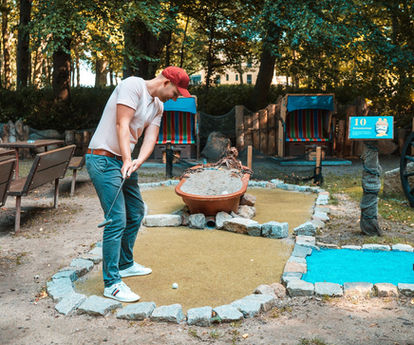 Freizeitspaß für die ganze Familie findet ihr auch beim Minigolf . Hier können die Besucher*innen auf den verschiedenen Bahnen ihre Treffsicherheit und ihr Ballgefühl austesten. Für kleine Pausen gibt es ausreichend Bänke auf dem Gelände. Und am kleinen Kiosk könnt ihr Eis, Süßes und Getränke kaufen. Ihr findet uns direkt am Strand!